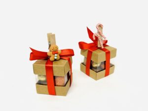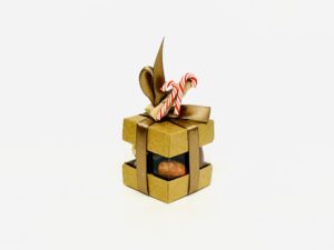 Petit cadeau d’assiette – cube noël – ruban caramel