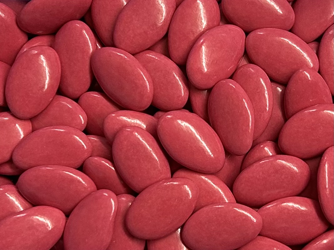 Proposées dans une teinte framboise intense avec finition vernie, ces dragées chocolat 70 % cacao séduisent par leur impact visuel et leur cœur chocolaté intact.