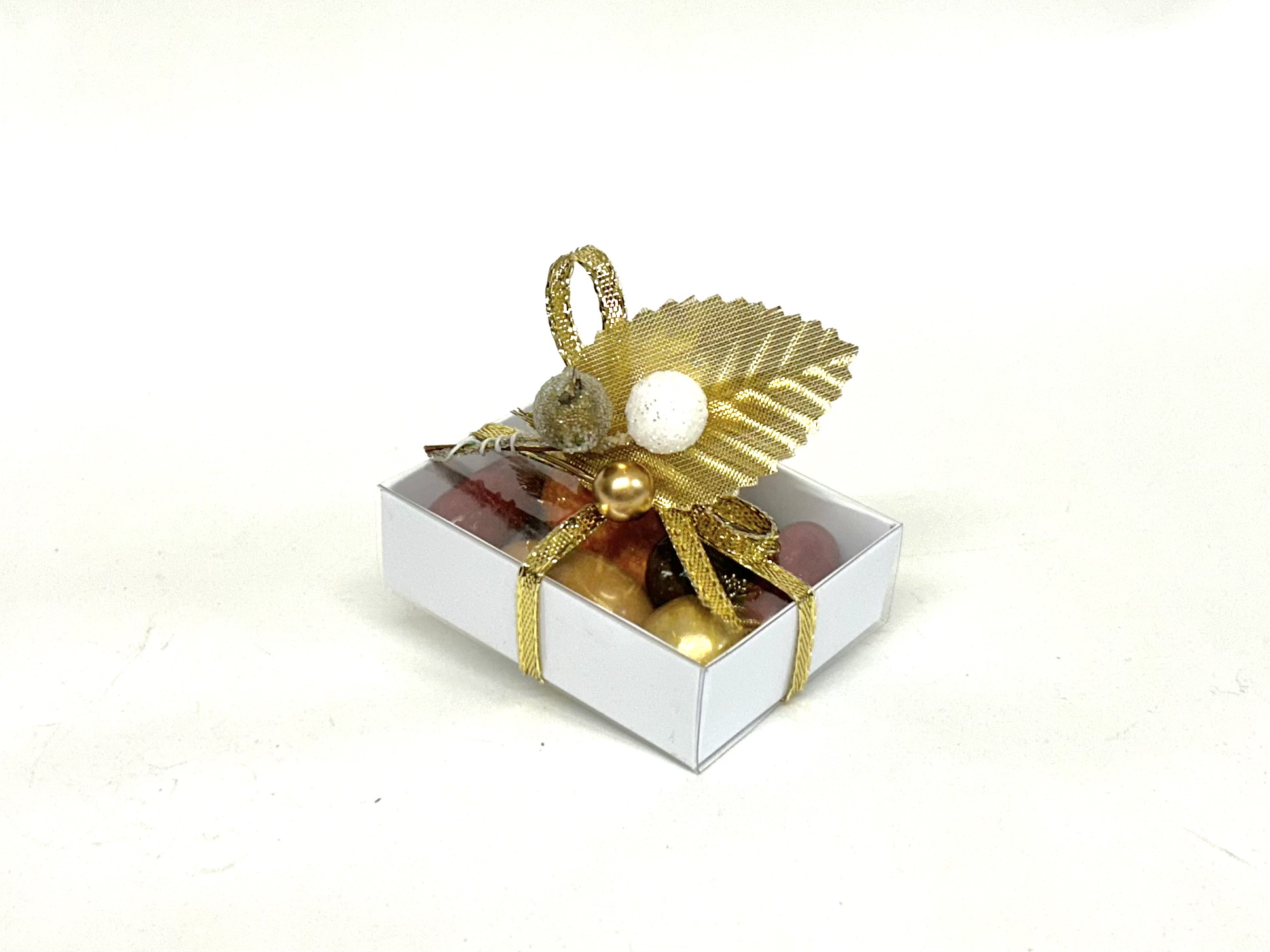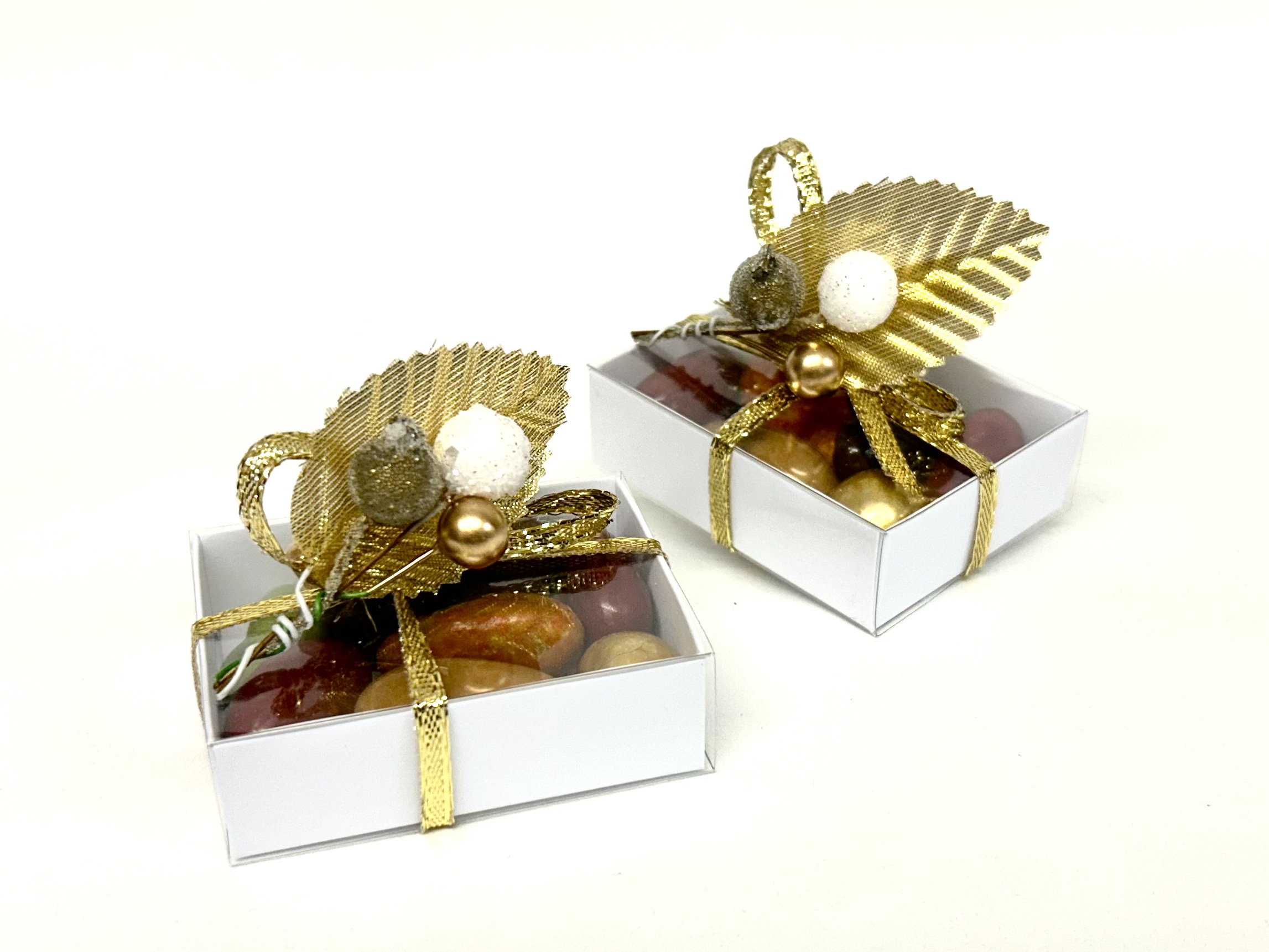 Noisette or : noisette grillée enrobée de chocolat noir, de sucre, argentée puis colorée