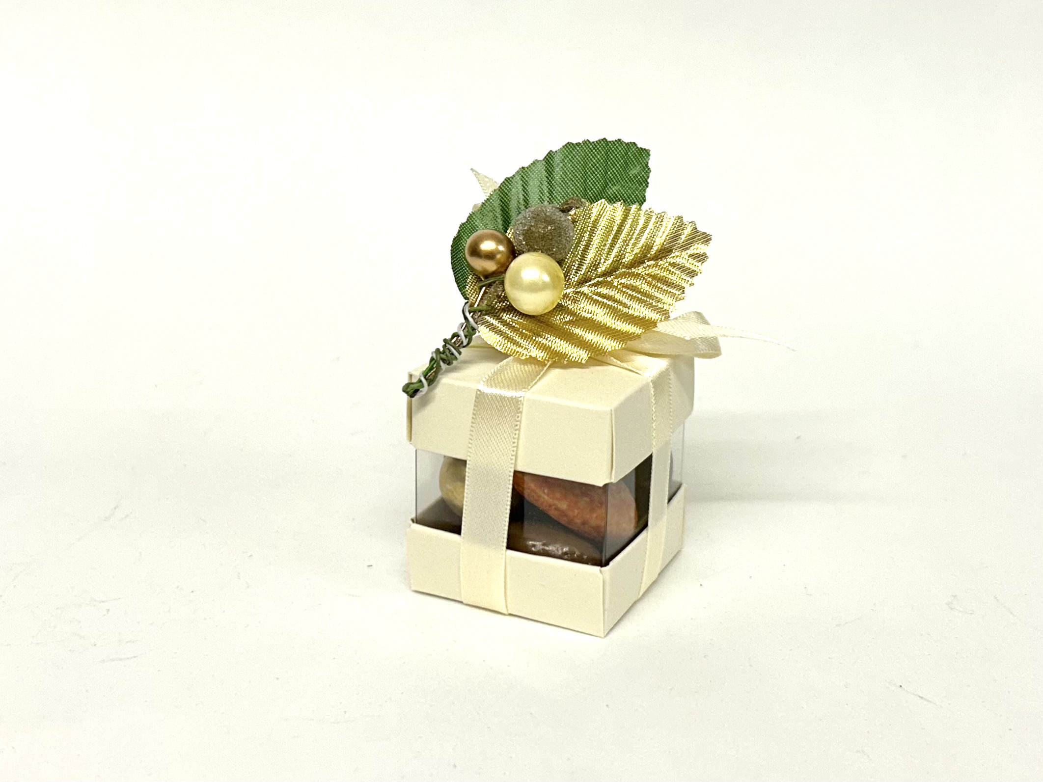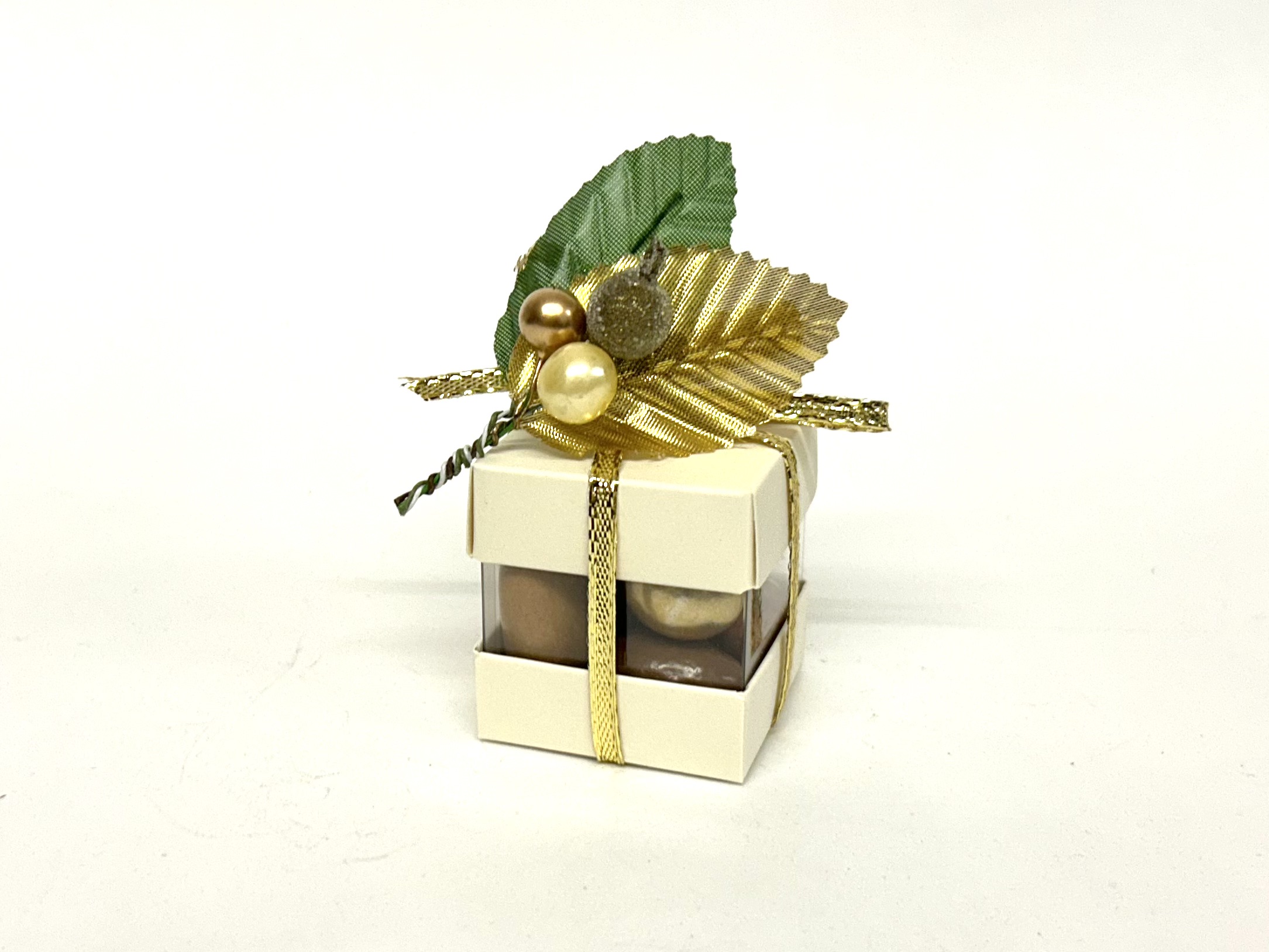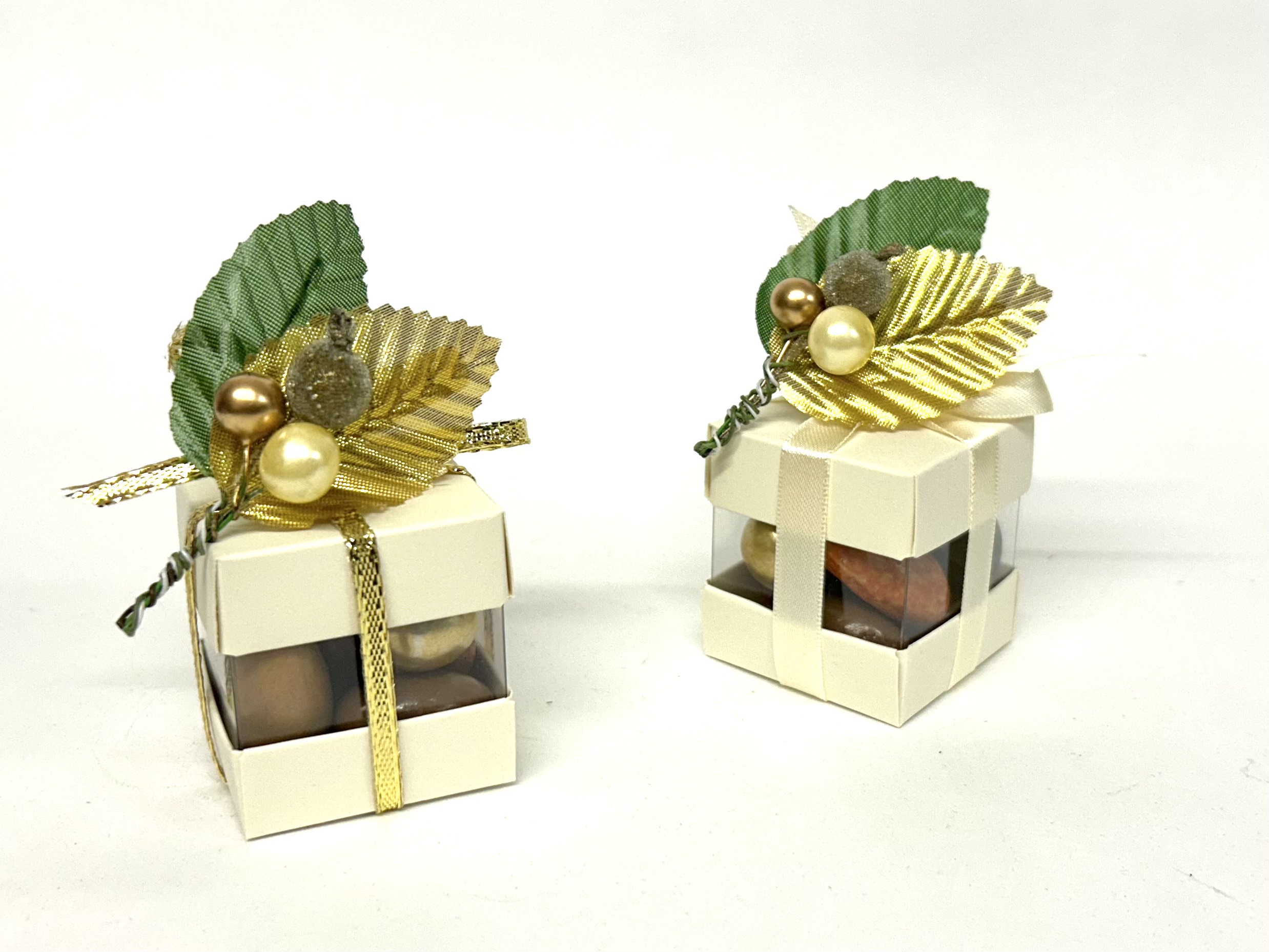 Noisette or : noisette grillée enrobée de chocolat noir, de sucre, argentée puis colorée